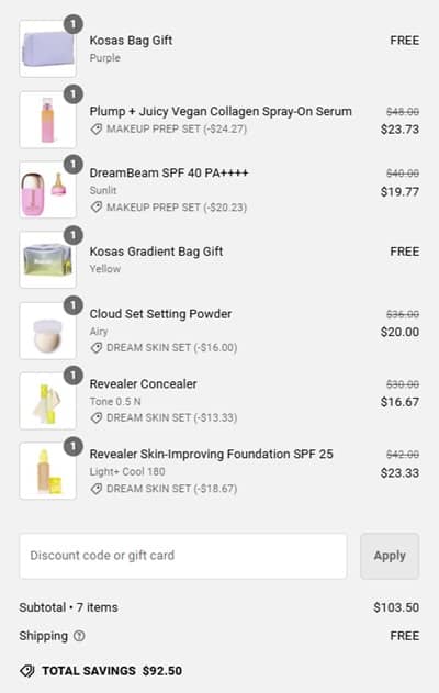 No code needed, Kosas Black Friday sale items are priced as marked. You will be prompted to choose your FREE gift with purchase once your order qualifies. FREE SHIPPING applies to orders $40+. Exclusions may apply. Take a look at our other favorite finds!