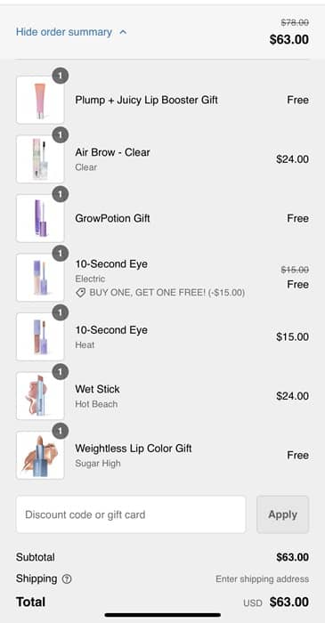 No code needed, the FREE gifts with purchase will add once your order qualifies. See our example cart below! FREE SHIPPING applies to orders $40+. Take a look at our other favorite finds!
