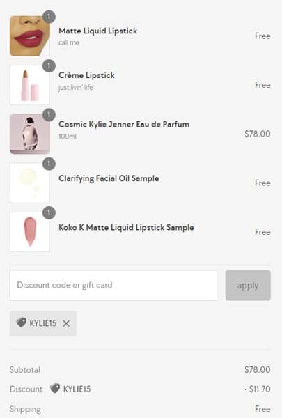 Besties! We love options! Shop KYLIE Cosmetics and receive your choice of FREE FULL SIZE Gift from the list below with any $40 purchase! Step up to a $70 order and you’ll pick 2 FULL SIZE items! Even better, new customers use the KYLIE Cosmetics coupon code KYLIE15 (click to copy) to save 15% OFF your first purchase!