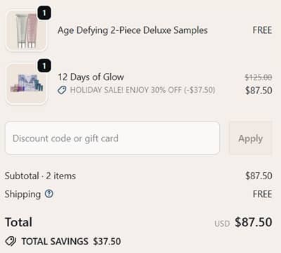 - FREE Age Defying Deluxe Sample Duo + FREE Cleanse & Resurface Trio with any $180 purchase