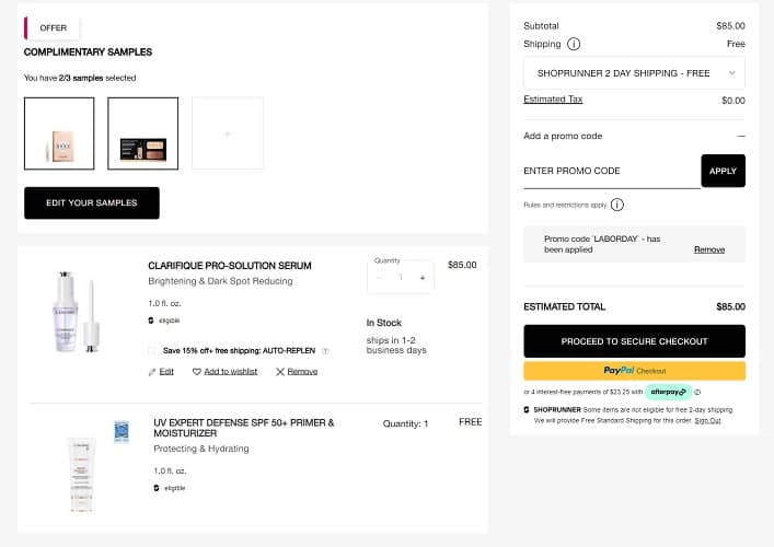 Add a qualifying item and it’s perfect pair will add to cart once you enter the Lancôme coupon code LABORDAY in cart. Don’t forget to add your FREE samples. FREE SHIPPING on orders $100+ ($49+ for Elite Rewards members) or FREE SHIPPING on eligible qualifying orders $25+ with ShopRunner. If you don’t have a ShopRunner account you can sign up for a FREE 1 year membership courtesy of Paypal and get FREE 2-DAY SHIPPING at some of your favorite stores! Exclusions may apply. Take a peek at our other favorite deals!
