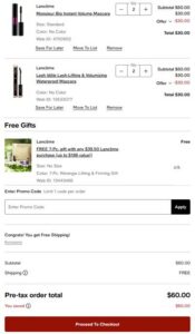- FREE 2 Piece Gift with any $80 Lancôme purchase (UP TO $239 value)