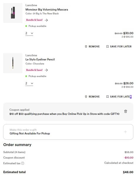Use the coupon code GIFT10 (click to copy) to save $10 OFF your qualifying $50+ BOPIS, buy online pick up in store, order (exclusions apply).
