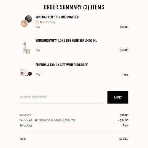 Discover a new favorite today! It’s your LAST DAY to save 25% OFF bareMinerals during their Friends & Family Sale Event PLUS receive a FREE 3 Piece Gift (a $30 value) with your $75+ order! Pick up the bestselling classic bareMinerals Original Powder Foundation or add the fan favorite Skinlongevity Long Life Herb Face Serum to your skincare routine to tackle texture and boost radiance! What’s in your cart Bestie?