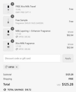 Find your new signature scent today! Save 20% OFF your DedCool fragrance purchase PLUS an additional 10% OFF when you use the code below! You’ll also receive a FREE Milk or Xtra Milk Travel Spray, a $30 value, with your $100 order! Choose Eau de Parfum, room spray, candles, detergent, and so much more! From gourmand layering scents to woody blends, you’ll definitely find your new favorite on sale today! Check out our example cart below!