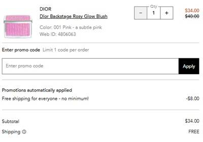 No code needed, Dior makeup, skincare, and fragrance priced as marked. The FREE gift with purchase will add to cart once your order qualifies. FREE SHIPPING applies automatically at checkout. Exclusions may apply. Take a peek at our other favorite deals!
