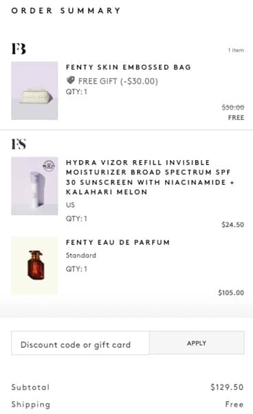 No code needed, items are priced as marked. You will be prompted to add the FREE FENTY Beauty Black Friday gift with purchase once your order qualifies. FREE SHIPPING applies automatically at checkout. Excludes Fenty Parfum Body Creme and CLF donations and products. Other exclusions may apply. Take a look at our other favorite finds!