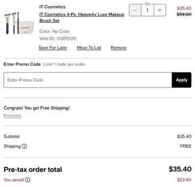- FREE deluxe CC+ Cream with any $50 It Cosmetics Purchase