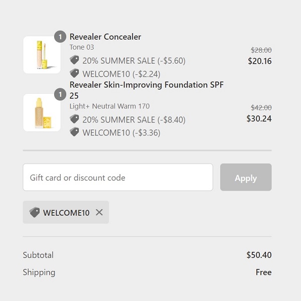 Kosas is treating us to a Summer Sale so you can treat yourself to SUMMER SAVINGS but TODAY is the FINAL DAY! Save 20% OFF your purchase sitewide PLUS new customers/emails use the code WELCOME10 to save an ADDITIONAL 10% OFF! FREE SHIPPING applies to orders $50+. Exclusions may apply.