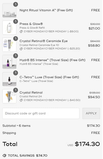 No code needed, eligible Medik8 Cyber Monday sale items are priced as marked. The FREE gifts with purchase will add to cart once your order qualifies. FREE SHIPPING applies to orders $60+. Excludes sets. Other exclusions apply. Take a look at our other favorite finds!