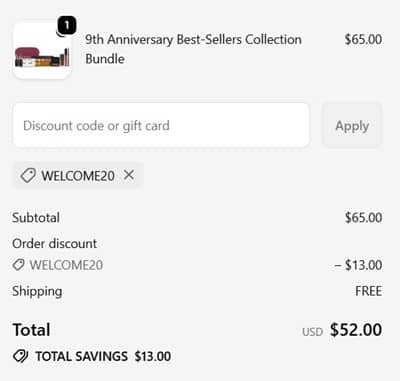 Perfect for the makeup lover in your life or keep it all to yourself! It’s your LAST CHANCE to score the Mented 9th Anniversary Bestsellers Bundle for only $65 with FREE SHIPPING! Included in the signature makeup bag are the FULL SIZE faves Every Night Eyeshadow Palette, Blush, 2 Semi-Matte Lipsticks, Lashes, and more! Check out our example cart below!