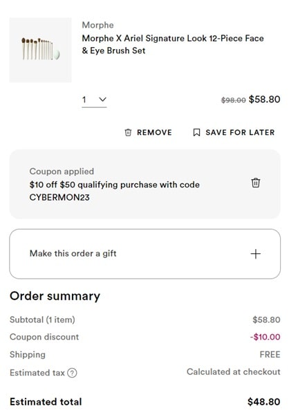 Use the Ulta Beauty coupon code 472137 (click to copy) for $5 OFF your non prestige purchase of $15+ or the code CYBERMON23 (click to copy) for $10 OFF your $50 purchase (exclusions apply*). Remember to activate any other points multiplier offers you may have available to you before you check out.