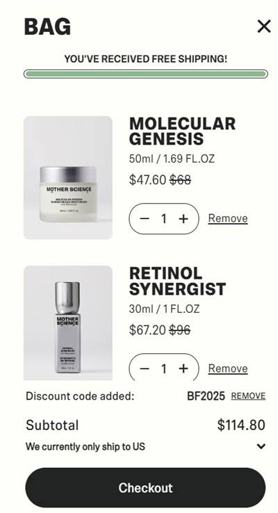 Upgrade your skincare routine with a targeted treatment! Today is the LAST DAY to take 30% OFF the Retinol Synergist and Molecular Genesis Barrier Repair during the Mother Science Black Friday Sale Event! Save 25% OFF the Molecular Hero Serum! Tackle fine lines and wrinkles with these powerhouse favorites!