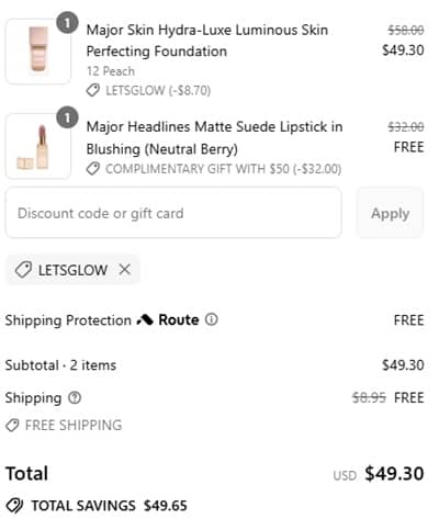 - FREE FULL SIZE Major Headlines Lipstick with any $50 purchase ($32 value)