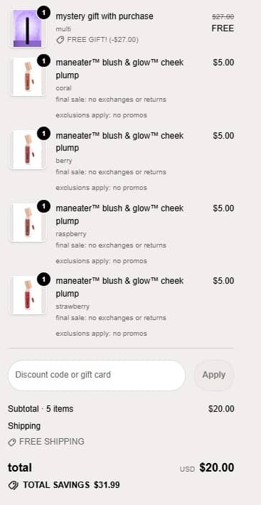 Besties! Run, don’t walk! FREE SHIPPING always gets us! Today is the LAST DAY to score the bestselling Tarte Maneater Blush & Glow Cheek Plump for only $5! PLUS sign in to your Rewards account (free to join) and orders of 4+ items will receive a FREE Mystery Gift valued at $27! Regularly $29 EACH, grab your favorite shades before they’re gone!
