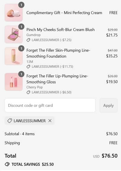 Use the Lawless summer sale coupon code LAWLESSSUMMER (click to copy) to add the discount to your cart. The FREE gift with purchase will add once your order qualifies. FREE SHIPPING applies to orders $50+. Excludes bundles. Other exclusions may apply. Take a look at our other favorite finds!