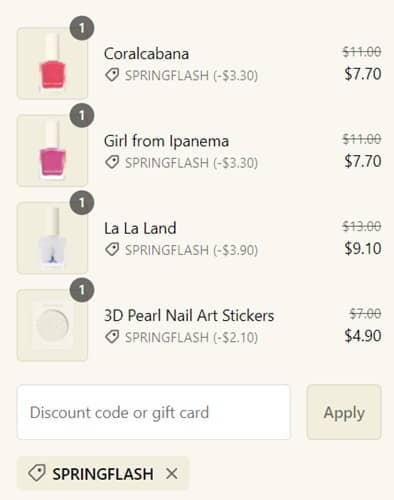 Use the Lights Lacquer coupon code SPRINGFLASH (click to copy) to add the discount to your cart. FREE SHIPPING applies to orders $60+. Select shades only. Take a look at our other favorite finds!
