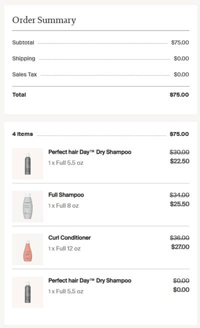 - FREE 5.5oz Perfect Hair Day Dry Shampoo on orders $75+ ($30 value) OR