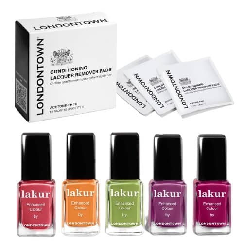 Calling all of our lacqueristas! This is a can’t miss deal! The Londontown Hot Tropic Lakur & Remover Pads Set is only $32 with FREE SHIPPING at HSN! This set includes 5 FULL SIZE, Lakur nail polishes in perfect for the summer shades, that regularly retail for $16 EACH! As an added bonus you’ll also receive a 10 count box of the Conditioning Lacquer Remover Pads to help moisturize nails and make changing your polish a breeze!