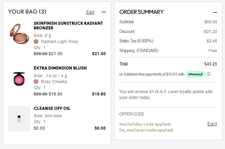Use the MAC Cosmetics coupon code MACHOLIDAY (click to copy)to add the discount to your cart. The FREE gifts with purchase will add automatically once your order qualifies. Don’t forget to add your FREE sample. FREE SHIPPING applies for all MAC Cosmetics loyalty members (free to join) or for non members, FREE SHIPPING applies to orders $35+. Take a look at our other favorite finds!