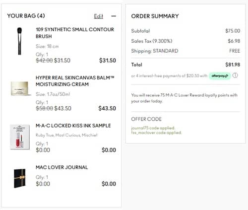 No code needed, eligible items are priced as marked. The FREE gift with purchase will add to your cart automatically once your order qualifies. Don’t forget to add your FREE sample. FREE SHIPPING for all MAC Cosmetics loyalty members (free to join) or for non members FREE SHIPPING applies to orders $35+.