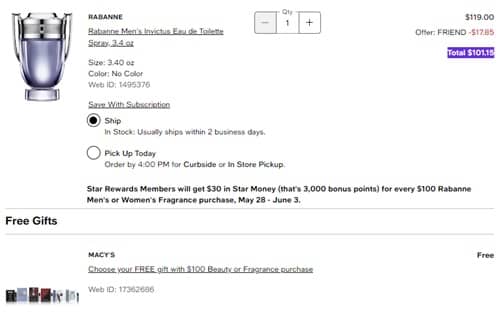 Calling all of our scent lovers! Today is the LAST DAY for Star Rewards members (free to join) to earn $30 in Star Money (that’s 3,000 points) for every $100 spent on Rabanne Fragrance PLUS use the code below for 15% OFF! To make the deal even sweeter, choose your FREE 5 Piece Gift with any $100 beauty or fragrance purchase! Whether you love the blood mandarin and peppermint notes of the bestselling 1 Million Eau de Toilette or the grapefruit and marine accords in Invictus, score those bonus points today!