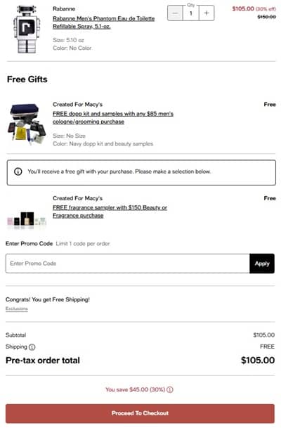 Great for gifting or adding to your own collection! Save 30% OFF select JUMBO cologne for a LIMITED TIME ONLY at Macy’s! Choose from the deep, woody florals of Givenchy Gentleman Society Eau de Parfum or the bold, creamy lavender and vanilla notes in Rabanne Phantom Eau de Toilette! Armani, Ralph Lauren, Viktor&Rolf, Burberry, and more! To make the deal even sweeter receive a FREE Dopp Kit with any $85 cologne or grooming purchase! Beauty and fragrance orders $150+ also receive a FREE Mystery Sampler!