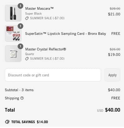 No code needed, eligible Makeup by Mario summer sale items priced as marked. You will be prompted to add your FREE sample once your order qualifies. FREE SHIPPING applies to orders $35+. Exclusions may apply. Take a look at our other favorite finds!