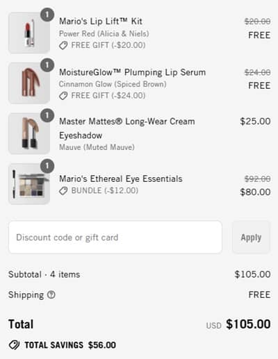 Get that perfect summer pout! Receive a FREE Makeup by Mario MoistureGlow Plumping Lip Serum with any $50 purchase WHILE SUPPLIES LAST! You even get to choose your favorite from the 19 shades available! It gets better! Orders $100+ also receive a FREE Mario’s Lip Lift Kit that includes a mini Ultra Suede Lipstick and mini Sculpting Lip Pencil!