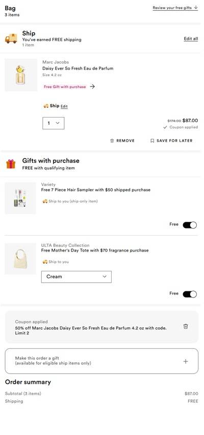 Use the Ulta Beauty coupon code 229676 (click to copy) to add the discount to cart. Limit 2. Don’t forget to activate any points multiplier offers you may have available to you! FREE SHIPPING applies to orders $25+ for Diamond members and $35+ for everyone else or choose FREE BOPIS (buy online pick up in store) if available in your area. Check out our other favorite Ulta Beauty finds!