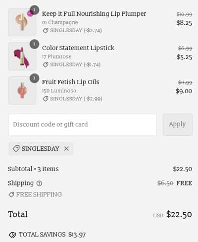 Use the Milani coupon code SINGLESDAY (click to copy) to add the discount to cart. The FREE gift with purchase will add to cart once your order qualifies. FREE SHIPPING applies automatically at checkout. Excludes new items. Other exclusions may apply. Take a look at our other favorite finds!