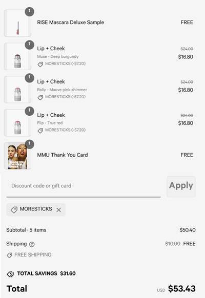 Use the Milk Makeup Lip + Cheek coupon code MORESTICKS (click to copy) to add the discount to cart. FREE SHIPPING and a FREE sample apply to orders $50+.Take a look at our other favorite finds!