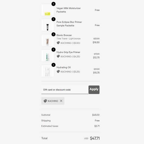 Use the Milk Makeup coupon code KACHING to add the discount at checkout. FREE SHIPPING and samples apply to orders $45+. Exclusions may apply. Take a look at our other favorite deals!
