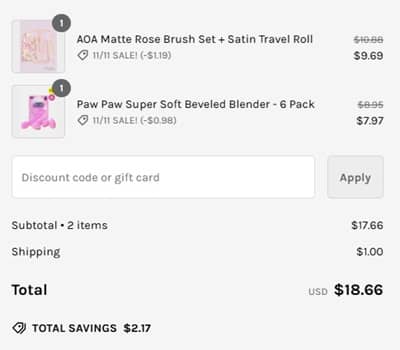 Savings on affordable goodies? Yes, please! For a LIMITED TIME ONLY save 11% OFF your MISS A purchase PLUS enjoy $1 shipping for orders $15+! Including already reduced items, sets, and even the newest AOA Skincare Collection! Shop for your favorite foundation, moisturizer, primers, powders, lippies, and more! With items starting as low as 89¢, you won’t want to miss this sale!