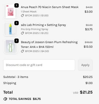 This offer does include new and already reduced items! Shop your favorites from AOA, a2o Labs, Beauty of Joseon, Mediheal, Anua, SKIN1004, and so many more that have been previously excluded!