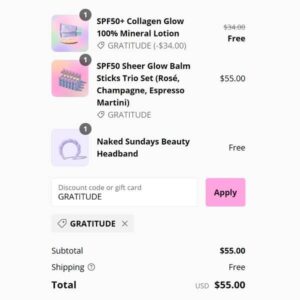 Add your FULL SIZE option to cart, use the Naked Sundays coupon code GRATITUDE and it will become FREE once your order qualifies. Be sure to add on the FREE Headband if prompted in cart. FREE SHIPPING applies to orders $50+. Take a look at our other favorite finds!