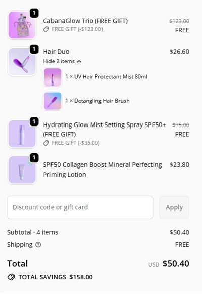 A FULL SIZE freebie and FREE SHIPPING! Receive a FREE Hydrating Glow Mist Setting Spray SPF50+ with any $10 order for a LIMITED TIME ONLY! Regularly $23, this skincare-infused formula will keep you safe in the sun with a luminous glow! Step up to a $50 order and you’ll also score a FREE CabanaGlow Trio! Today’s the day to shop the UP TO 50% OFF sitewide Cyber Savings and enjoy your freebie!