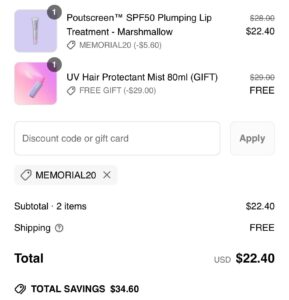 No code needed, the FREE Naked Sundays UV Hair Protectant Mist will add to cart once your order qualifies. Use the coupon code MEMORIAL20 (click to copy) to add the discount to cart. FREE SHIPPING applies automatically at checkout. Take a look at our other favorite finds!