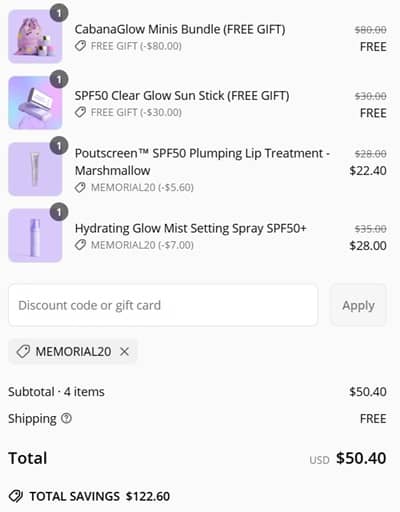- FREE CabanaGlow Minis Bundle with any $60 purchase ($80 value)