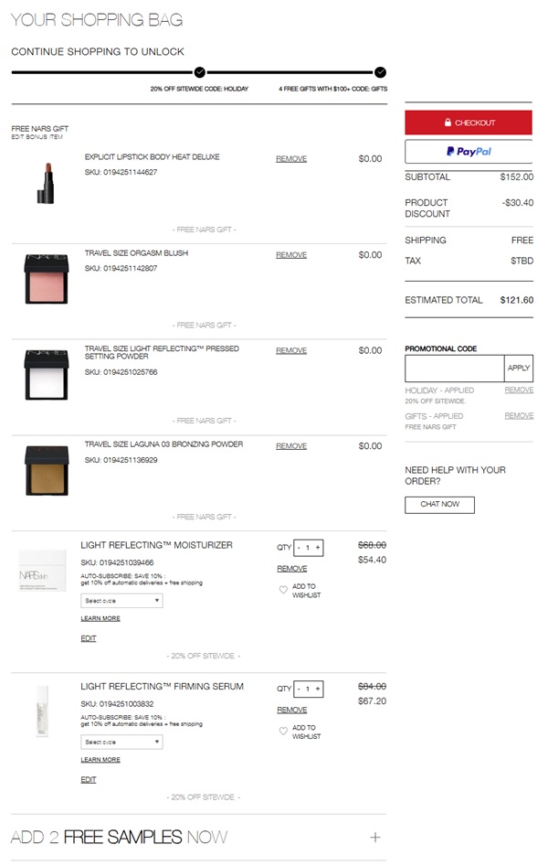 Use the NARS Holiday coupon code HOLIDAY (click to copy) to add the discount to cart. You will be prompted to choose your FREE gift with purchase once your order qualifies. Members also enjoy FREE SHIPPING so be sure to sign in. Excludes Ultimate Blush Palette and last chance items. Other exclusions may apply. Take a look at our other favorite finds!