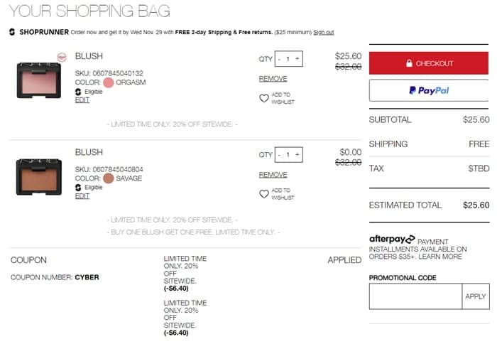 Add 2 blushes to cart and 1 will become FREE automatically. Use the NARS coupon code CYBER (click to copy) to apply the additional discount. FREE SHIPPING applies automatically at checkout. Take a look at our other favorite finds!
