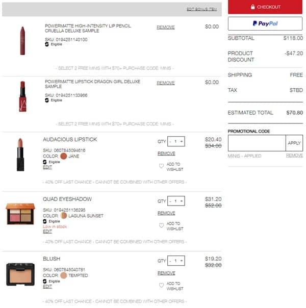 No code needed, NARS Last Chance items are priced as marked. Use the coupon code MINIS (click to copy) to add the FREE gifts with purchase to cart. Don’t forget to add your FREE samples. Sign in to your account to enjoy FREE SHIPPING. Take a look at our other favorite finds!