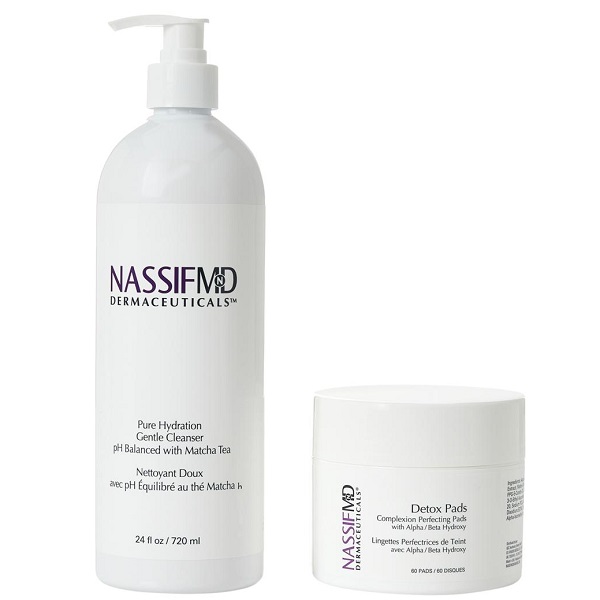 Bring the spa treatments home for a brighter, more glowing complexion! The NassifMD Cleanse & Exfoliate Set is only $49 with FREE SHIPPING at HSN! This set, valued at $125 if purchased separately, contains a FULL SIZE 24oz Pure Hydration Gentle Cleanser and a FULL SIZE 60ct Detox Complexion Perfecting Pads! Pick up yours today!