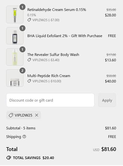 Use the Naturium labor day sale coupon code VIPLDW25 (click to copy) to add the discount to cart. The FREE gift with purchase will add once your order qualifies. FREE SHIPPING applies to orders $40+. Excludes bundles. Other exclusions may apply. Take a look at our other favorite finds!