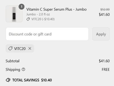 Use the Naturium Vitamin C coupon code VITC20 (click to copy) to add the discount to your cart. FREE SHIPPING applies to orders $40+. Take a look at our other favorite finds!