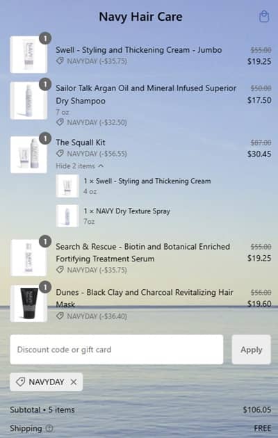 Besties, say goodbye to bad hair days with Navy Hair Care! For a LIMITED TIME ONLY save 65% OFF your purchase! Including sets! From the bestselling Search and Rescue Shampoo and Conditioner to strengthen your locks to the fan fave Dry Texture Spray for bouncy natural hold! Add to cart!