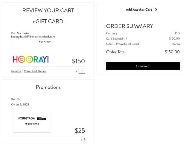 Besties, there’s no better time than TODAY to purchase a gift card at Nordstrom! For a LIMITED TIME ONLY, you’ll get a FREE $25 promotional card with the purchase of $150+ in gift cards! Send them to yourself or send to a loved one and keep the promotional card for yourself! That’s an extra $25 to spend on all the latest makeup, skincare, and hair care! What will you use yours on?
