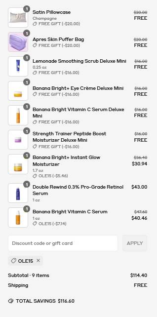 No code needed, priced as marked. New customers use the coupon code OLE15 (click to copy) to save 15% OFF your first purchase! You will be prompted to add the FREE gifts with purchase once your order qualifies. FREE SHIPPING applies to orders $50+. Exclusions may apply. Take a look at our other favorite finds!
