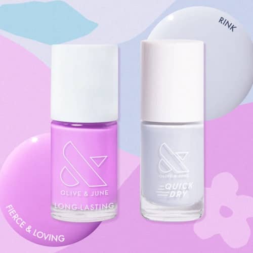 Calling all of our lacqueristas! This gift with purchase is for you! Receive a FREE Olive and June Polish Duo valued at $16.50 with any $40 order! This set includes the fresh lilac shade Fierce & Loving PLUS the icy pastel blue shade Rink, yours for FREE with qualifying order! Add to cart today!