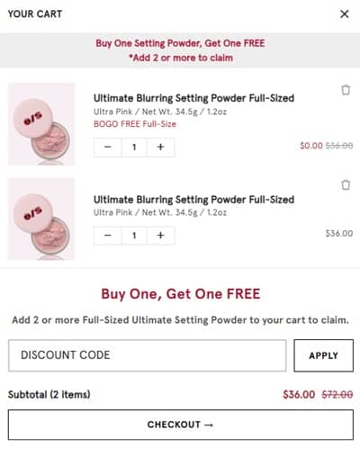 No code needed, add two eligible setting powders to cart and one will become FREE. FREE SHIPPING applies to orders $50+, for orders less than $50 shipping is $7.99. Take a look at our other favorite finds!